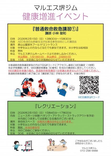 ※お申込みサイトQRコードより当日までに応急手当WEB講習を受講して下さい。受講後に発行されましたIDが当日必要となります。