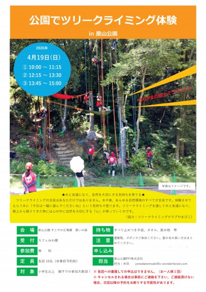 原山公園でツリークライミング体験!!参加者募集。